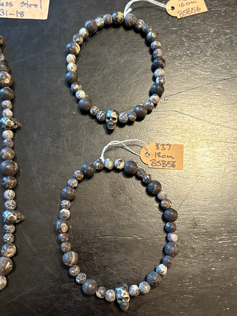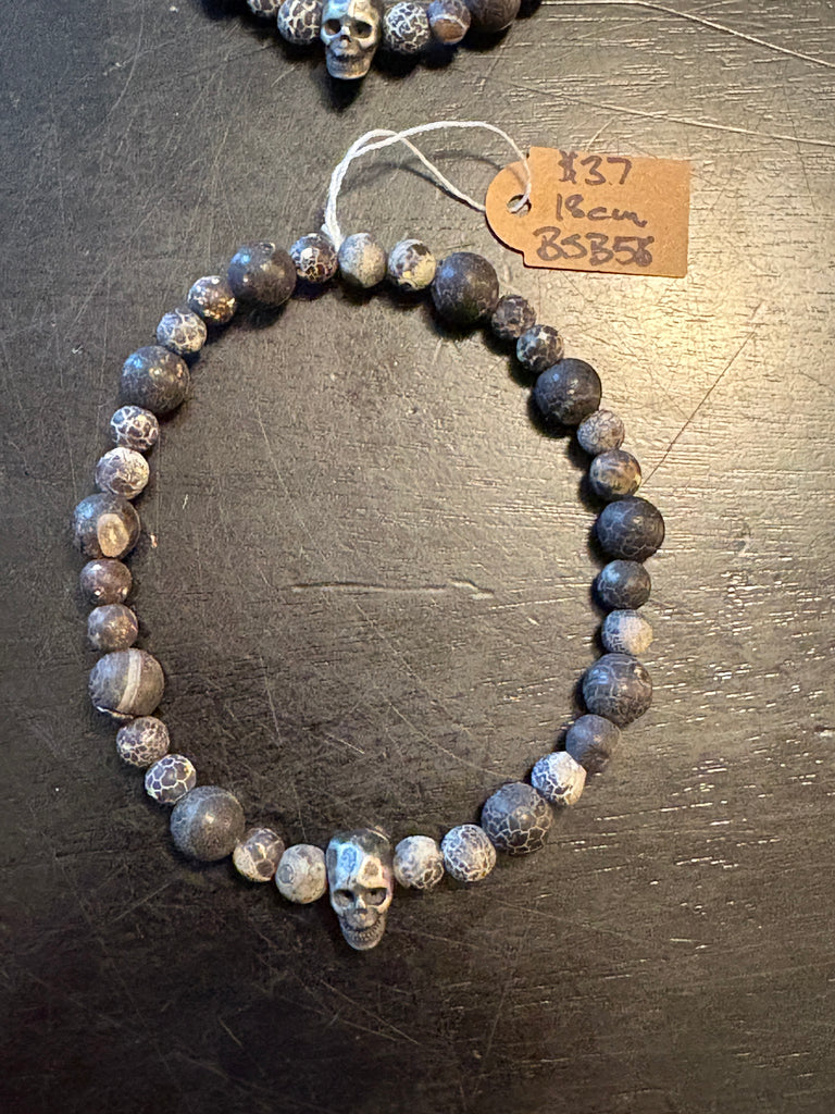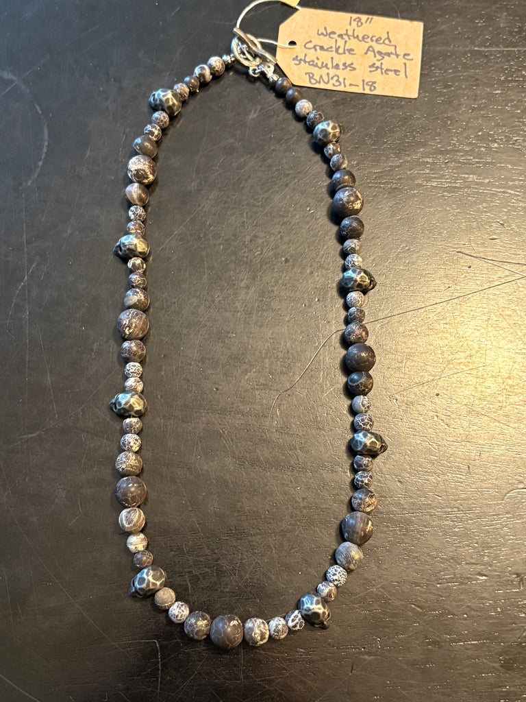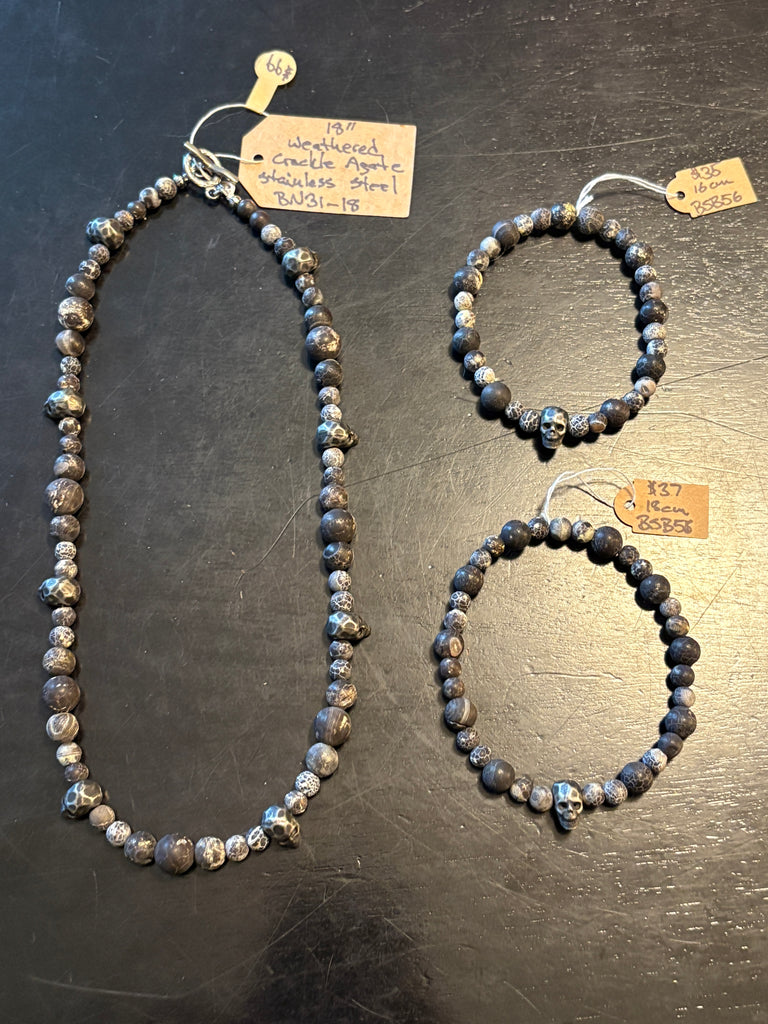 Weathered Crackled Agate Skulls by Local Fraser Valley Artisan Brent McMaster. Magical with a unique combination of artisanal passion and mystical energy, The Skull Collector is sure to bewitch and delight. Let the power of Brent's craftsmanship enchant you!